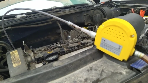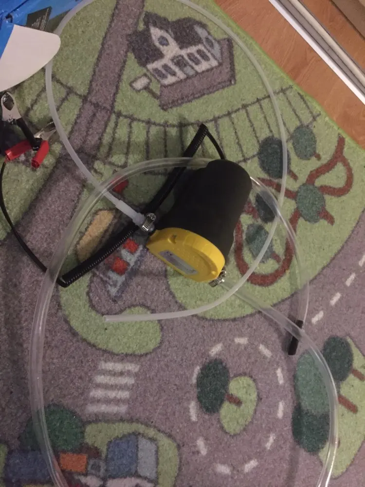 The oil extractor works by connecting the clamps to the 12V battery. The oil is simply drawn out of the motor through the oil outlet tube.
